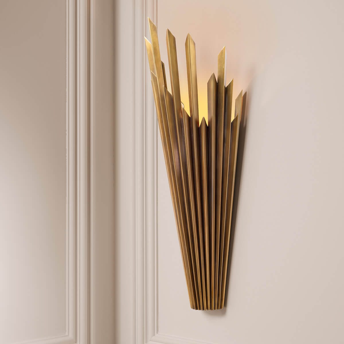Această aplică de perete cu design semnat Eichholtz este inspirată de razele soarelui și finisată în alamă cu aspect vintage, pentru un efect vizual cald și elegant. Este un uplighter decorativ, ideal pentru a adăuga profunzime pe orice perete din locuință.