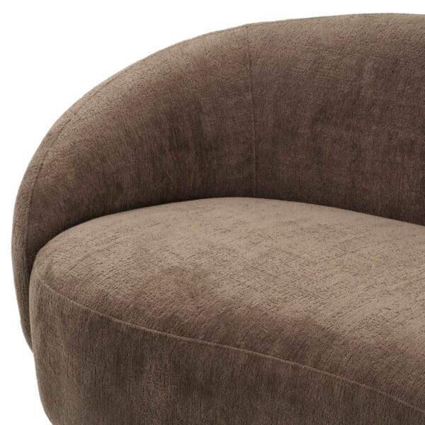 Tapițată într-un material textil fin, această canapea cu formă organică impresionează prin estetica sa și un design care combină frumusețea cu relaxarea. Aspectul său ușor suspendat, cu capete rotunjite, îi conferă o prezență elegantă, plină de rafinament.