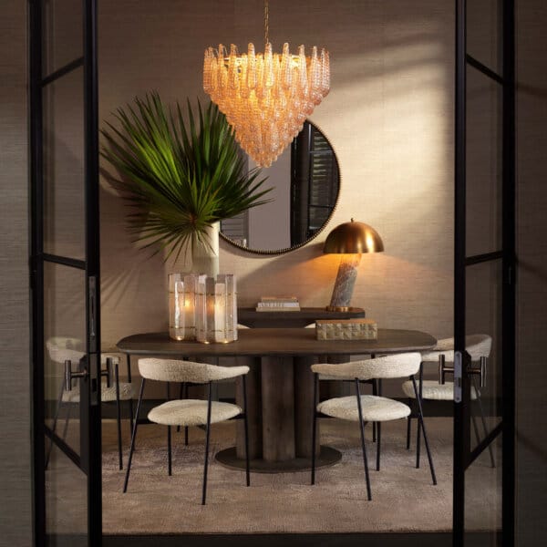 Designul său echilibrat și materialele rafinate creează un efect luminos cald, sofisticat, ideal pentru interioare care valorizează eleganța.