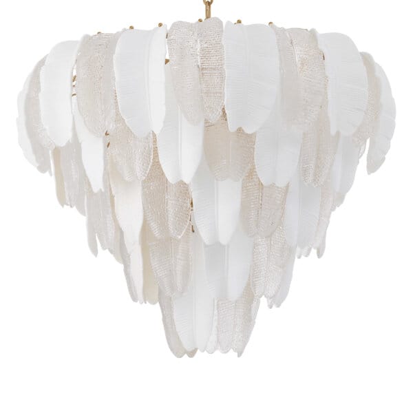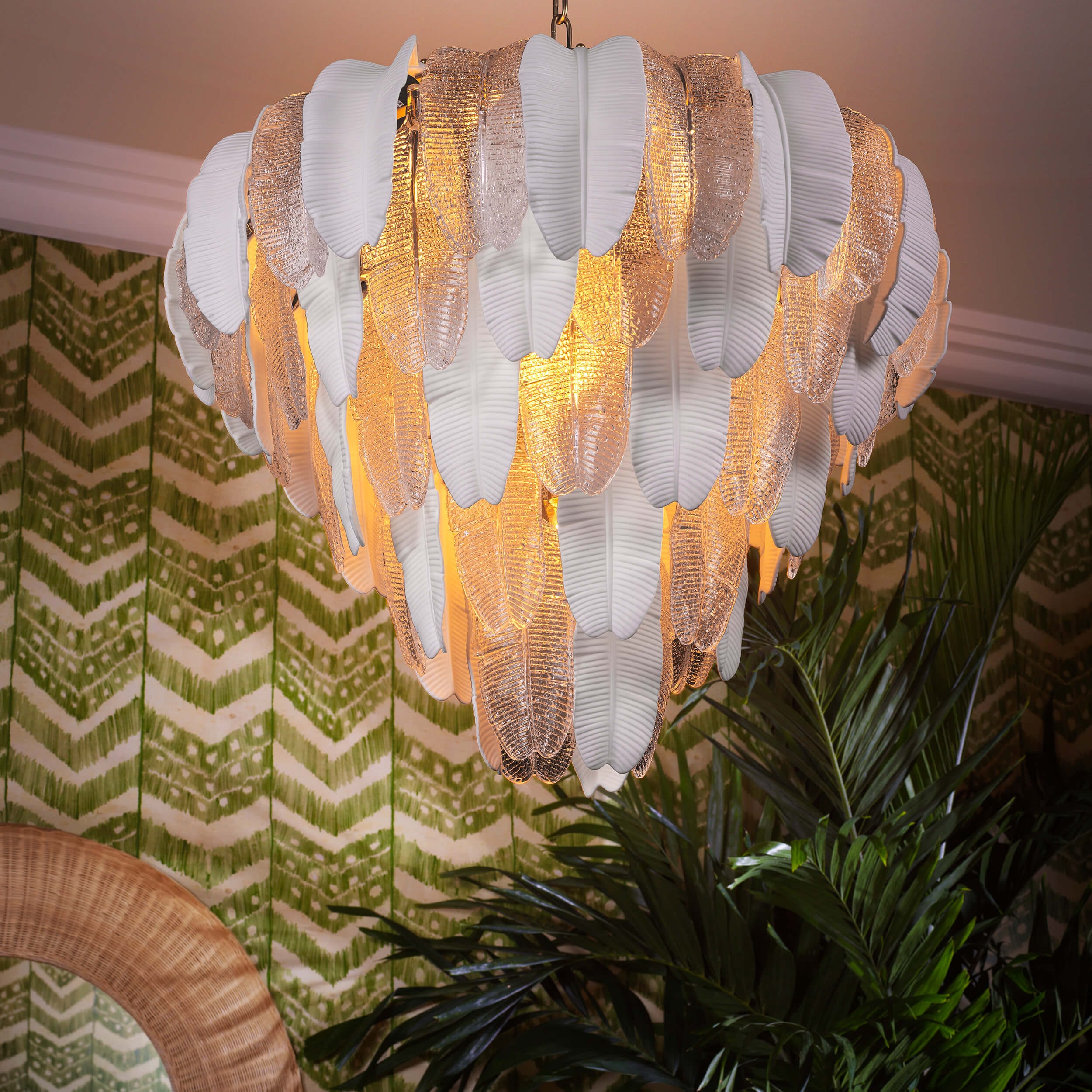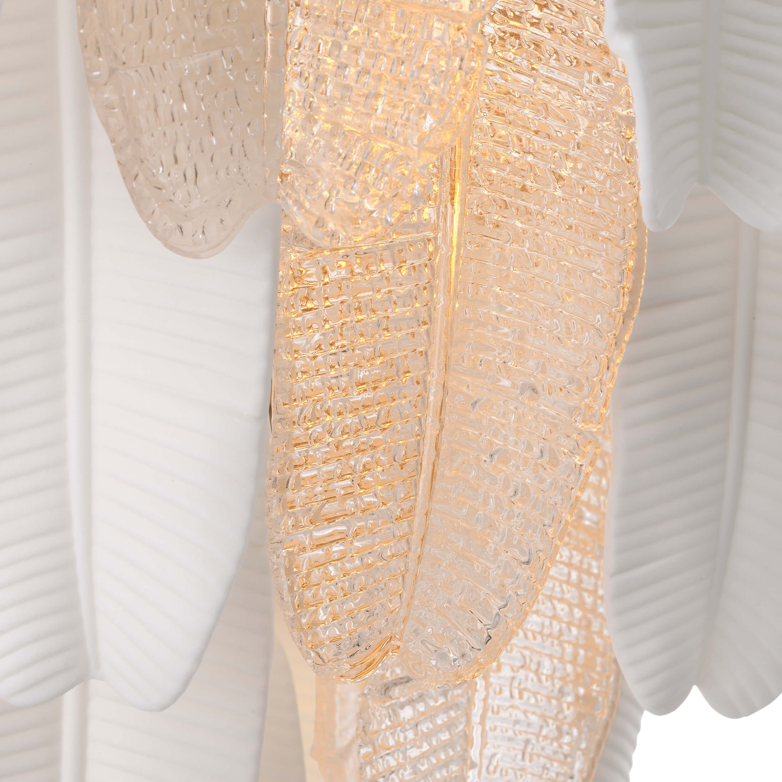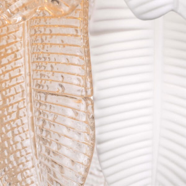 Inspirat de forma elegantă a arborelui de banane, candelabrul Saint Lucia aduce o combinație armonioasă între ceramică albă și sticlă texturată transparentă.