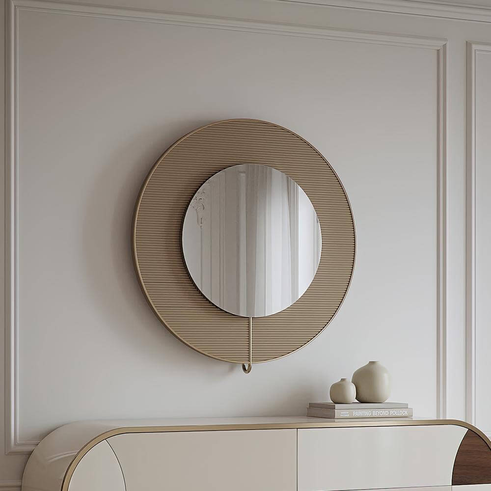 Oglinda Louis schimbă subtil atmosfera camerei printr-un design inspirat din anii ’60, adaptat gusturilor actuale. Alamă placată cu aur este folosită discret, oferind un contrast plăcut față de suprafața oglinzii. Combinația de materiale și proporțiile bine echilibrate fac din Louis o piesă decorativă potrivită pentru interioare cu personalitate.