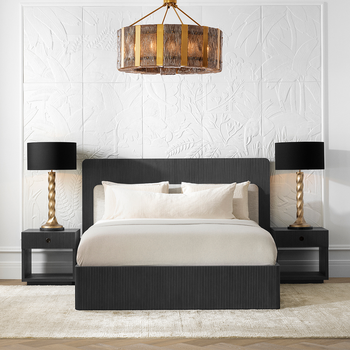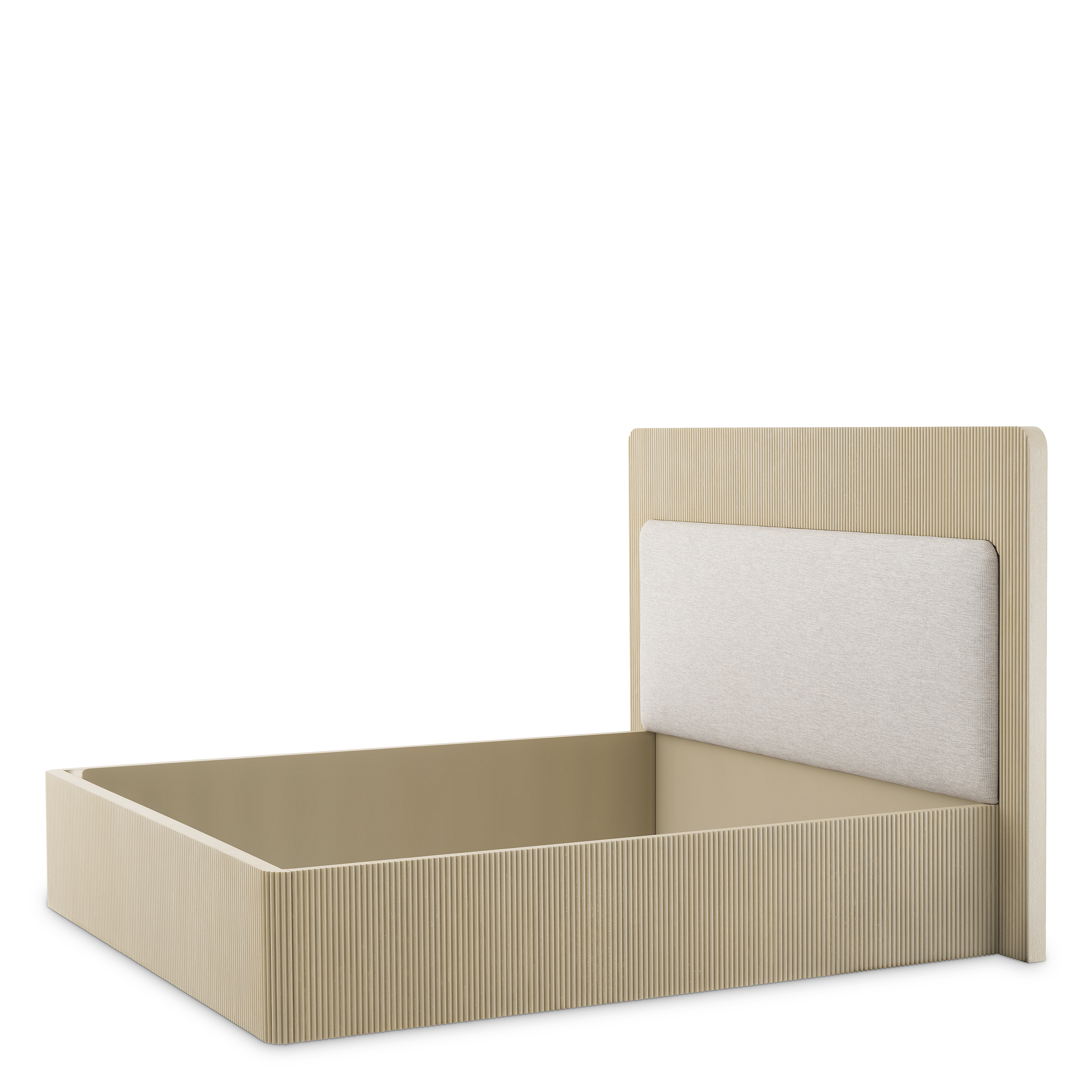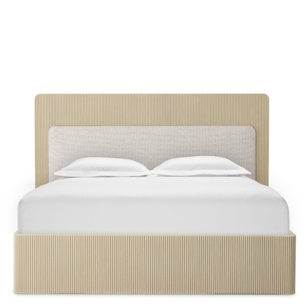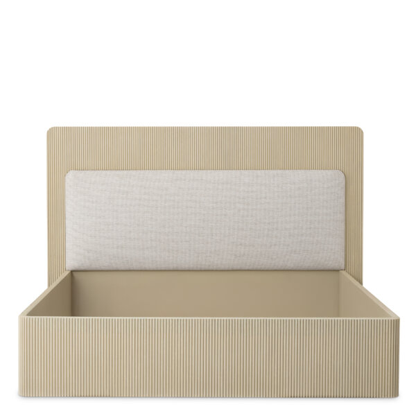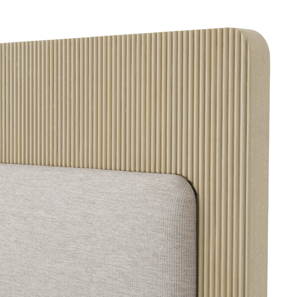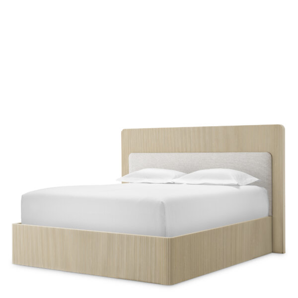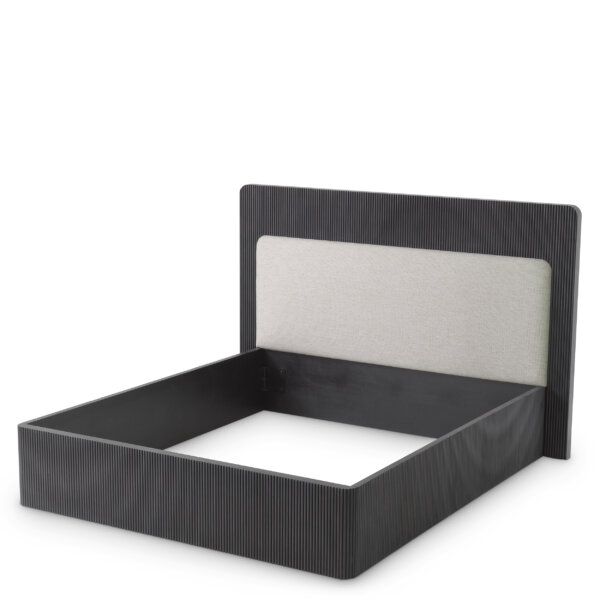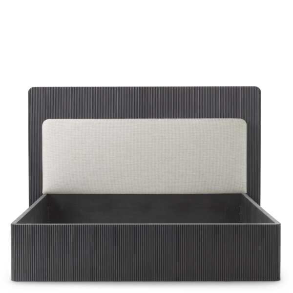 Combinația rafinată de lemn texturat, furnir de stejar și tapițerie moale oferă un aspect modern și sofisticat, în tonuri elegante și discrete. Proiectat cu atenție pentru a fi utilizat împreună cu o bază tip box spring, asigurând un nivel excepțional de confort și susținere.