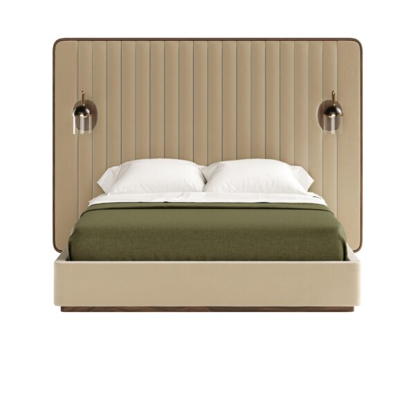Patul Como reinterpretează farmecul anilor ’50 într-o manieră sofisticată și plină de personalitate. Designul său aduce în dormitor un echilibru subtil între stilul retro și cel modern, îmbinând simplitatea formelor cu detalii îndrăznețe. Cele două surse de lumină perfect integrate în tăblie evocă rafinamentul epocii de aur, transformând această piesă într-un adevărat element statement.