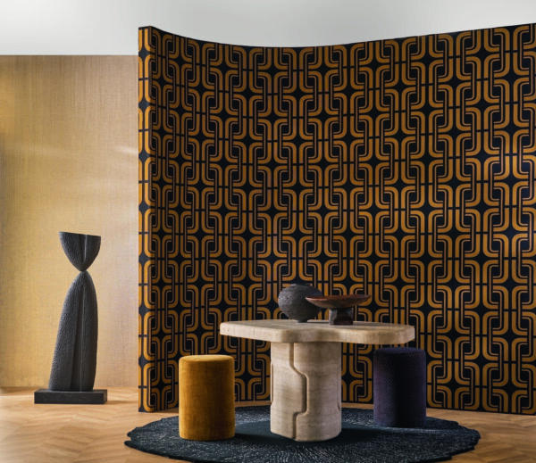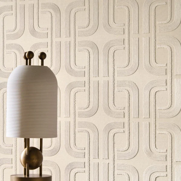 Modelul subliniază liniile subtile și simetria lor armonioasă, iar formele geometrice suprapuse sunt create printr-un fir sidefat brodat pe o bază din in și bumbac. Unghiurile delicate și contururile fluide sunt trasate de mișcarea continuă și grațioasă a firului. Colecția este disponibilă într-o paletă de nuanțe sofisticate, îmbinând alb cu blanc și ivoire, craie cu ivoire, dar și le noir cu mordoré.